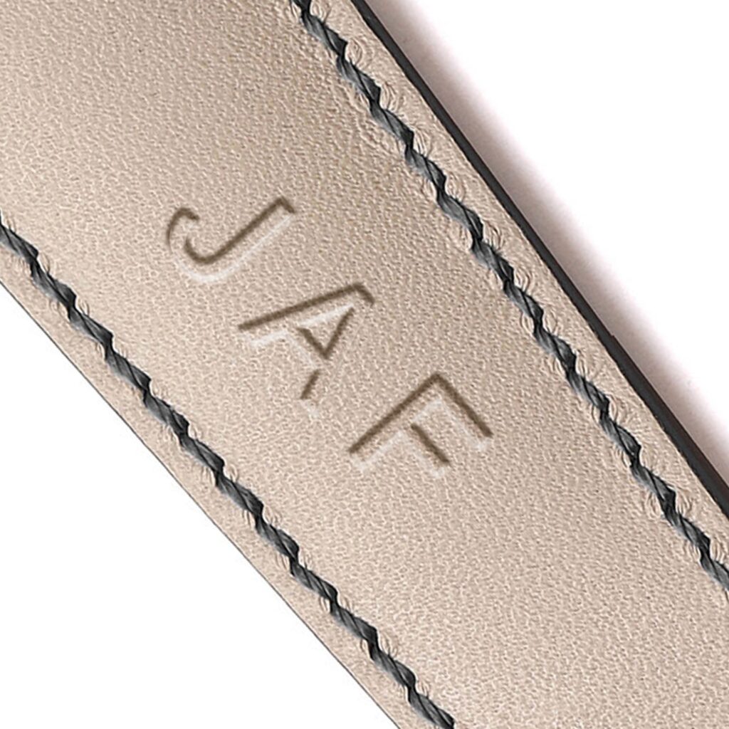 A special touch was added to this order – the client requested a personalized “JAF” logo stamped on the strap. At DRwatchstrap, we offer complimentary three-letter monograms with every order for free. Should you wish to include a custom graphic or more than three characters, we offer that option for just $25 extra. Custom logo for leather watch band